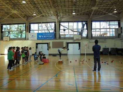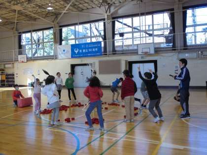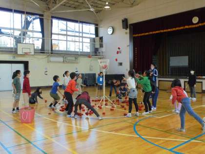 25日(金)の3時間目、4年1組は学級活動の時間でした。体育館で、「玉入れ」を楽しんでいました。一人ずつ玉を入れ、その合計点を競ったり、チェッコリの曲に合わせて玉入れをしたりしました。準備や片付けを自分たちで行う姿がとても立派でした。
