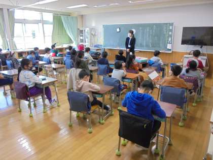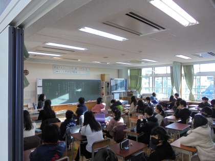 8日(金)午前8時25分から放送による始業式を行いました。校長先生の話の中に、3学期に取り組んでほしい「3つのかかわる」がありました。それは、「自分とかかわる」「ほかの人とかかわる」「世界とかかわる」です。子どもたちは、担任の先生が黒板に書いた「3つのかかわる」をじっと見つめていました。