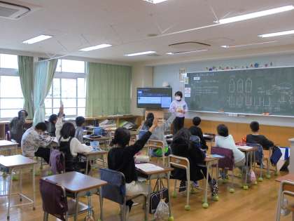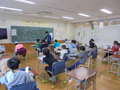 12日(火)の3時間目、4年生は算数の時間でした。3クラスに分かれての授業が始まりました。単元名は「小数と整数のかけ算とわり算」です。学習計画を立てたり、0.2×6の計算方法を考えたりしました。