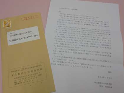 2学期末に、医療従事者の方々へメッセージをお送りしました。子どもたちのメッセージは都庁に集められ、そこから各病院等に届けられることになっていました。3学期が始まり、学校にお礼のお手紙が届きました。東京都済生会向島病院の院長様からでした。「皆様のとても心温まるメッセージを読んで、職員一同、感動し、涙を流している人もたくさんいました。病院職員を代表しまして心より御礼を申し上げます。」と綴られていました。担任の先生を通して、お手紙を紹介しました。改めて、コロナに負けず、元気に過ごすことを考えた子どもたちです。