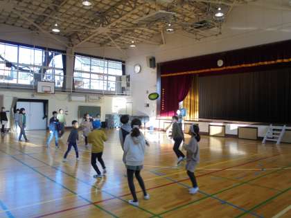 14日(木)午前8時25分から、たてわり班遊びをしました。校庭、体育館、ホールの3か所に分かれて遊びました。異学年での遊びも仲良くできました。