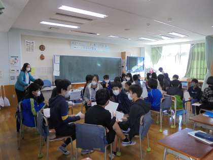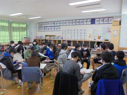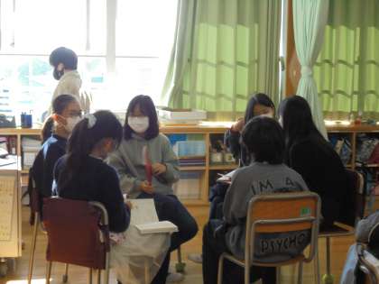 14日(木)の1時間目、6年1組は国語の時間でした。詩の朗読に取り組んでいます。今回は、同じ詩を選んだ人同士で、読み方の話し合いをしていました。