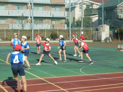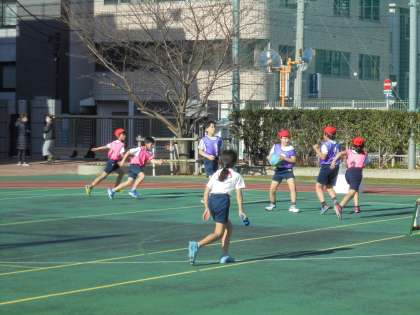 14日(木)の5時間目、4年1組は体育の時間でした。校庭で「ゴール型ゲーム」に取り組んでいました。チームのメンバーで声を掛け合い、パスをつないでいました。水入りのペットボトルを倒したときは、思わずガッツポーズが出ていました。