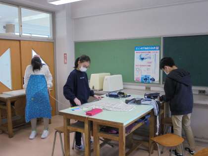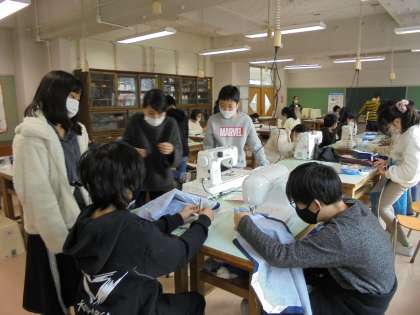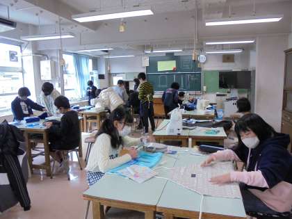 18日(月)の3・4時間目、6年1組は家庭科の時間でした。家庭科室で「エプロン作り」の続きをしました。エプロンに刺繍をしたり、アップリケを付けたりして工夫をしています。12月中に完成した人は、ミニ先生としてサポートに回っていました。