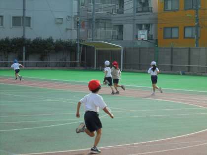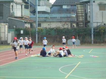 18日(月)の4時間目、1年2組は体育の時間でした。準備運動をしてから、校庭を自分のペースで走りました。今年度は、コロナ禍を考慮して、持久走月間を設けず、体育の時間に走ることにしました。時間になるとゆっくり歩いて呼吸を整えました。その後、なわとびの練習をしました。