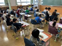 18日(月)の5時間目、3年1組は体育の時間でした。体育館で「Gボール」に挑戦しました。2人から3人で1個のGボールを使います。ボールに乗れるようにバランスをとったり、友達にボールを支えてもらったりしながら練習をしていました。途中、乗れるようになった人からコツを発表してもらったり、実演してもらったりしました。