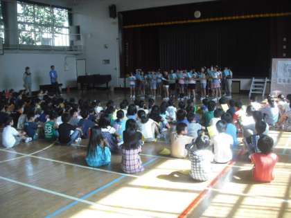 今日は5年生が主となって詩の朝会が行われました。「かくしあじ」の解釈をそれぞれにして、表現できました。