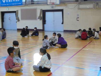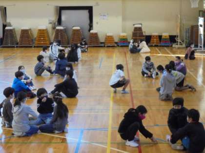 3年生と4年生は、サークル対話を暖房を入れた体育館で行いました。「最初はぎこちない感じだった。」と子どもたちが振り返っていましたが、4年生が上手に3年生の話を聞き出したり、3年生が4年生の話にうなずいたりして、対話ができてきました。