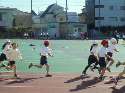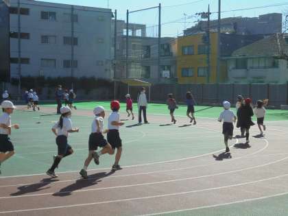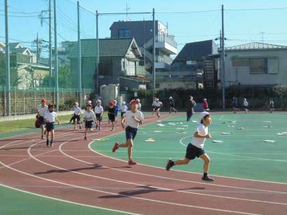 19日(火)の3時間目、2年生は校庭で合同体育を行いました。準備運動をしてから、校庭を走る3分間走に挑戦しました。密にならないようにスタート位置を変えて実施しました。先生の「あと1分」「あと30秒」の声に押されて、前へ前へとすすんでいました。