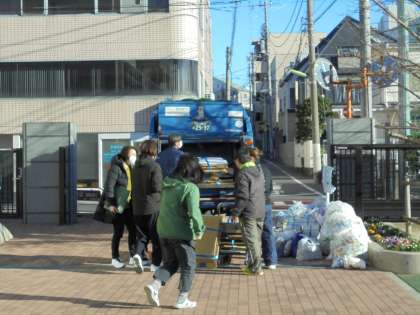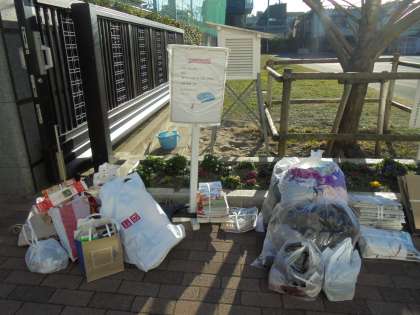 20日(水)の朝、北門の花壇の前に、新聞紙や段ボール、牛乳パック等のリサイクル品が並びました。子どもたちの中には「頼まれたよ。」と言いながら、紙袋やペットボトルのふたを持って登校した子もいました。午前8時50分ごろ、業者に引き取ってもらいました。保護者の皆様のご協力、ありがとうございます。