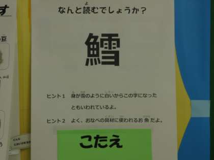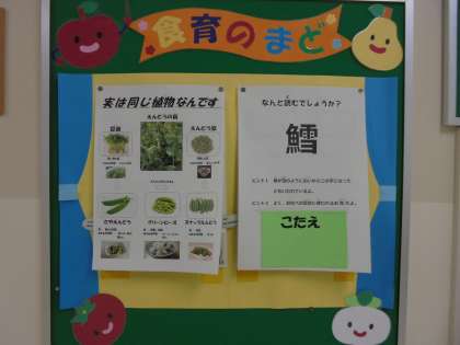 20日(水)、食育のまどが更新されました。今回のテーマは、「まめ」です。名前はいくつかあっても実は同じ植物だと紹介しています。更新2つ目は、漢字クイズです。魚へんに雪と書いて?