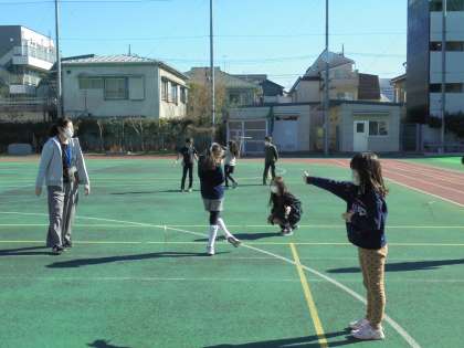 20日(水)の4時間目、1年2組は生活科の時間でした。校庭で「竹とんぼ」飛ばしに挑戦しました。「とんだ、とんだ」「見て見て」と笑顔で声を掛け合っていました。