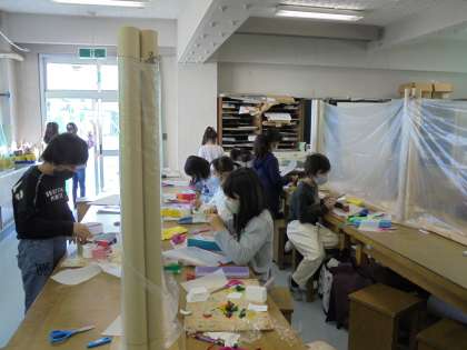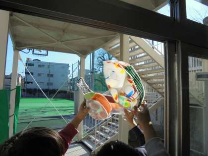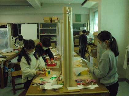 22日(金)の3・4時間目、3年1組は図画工作の時間でした。「光と色のファンタジー」と題して作品づくりに取り組んでいます。カラー段ボールとカラーセロファンを使い、自分だけの形や色を表現しています。ホットボンドで周囲を固めてから、光に当てて眺めていました。