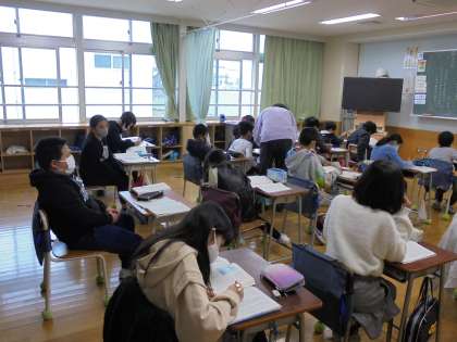 23日(土)の3時間目、4年2組は国語の時間でした。説明文「ウナギのなぞを追って」を段落ごとに要約しました。各段落で大事な言葉は何かを考えながら、文章を読んでまとめていました。