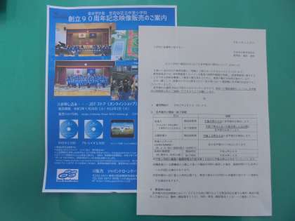 23日(土)までに、2種類のお知らせをお配りしています。1つは、「区立小学校の電話応対における音声案内の開始について」です。もう1つは、「創立90周年記念映像販売のご案内」です。音声案内は、2月1日(月)より開始いたします。映像につきましては、編集作業を繰り返し行い、ドローンによる人文字撮影、記念式典、バルーンリリース、普段の学校生活の様子、エンドロール等盛りだくさんの内容になっています。ぜひ、ご覧になってください。音声案内のお知らせは、トップページの「各種お知らせ」にも掲載しております。