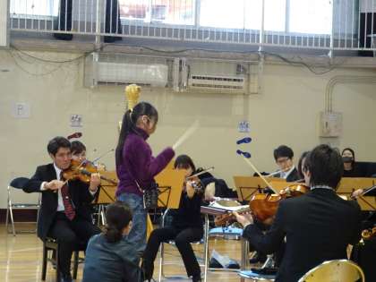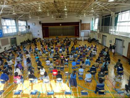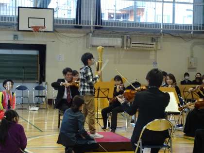 指揮者体験もさせていただきました。4年生以上の代表者が、実際にタクトを振りました。個性が出て、優しい音になったり、歯切れのよい音になったり、ゆっくりゆったりしたリズムになったりして、同じ曲でも、指揮者によって曲調が変わることも発見できました。