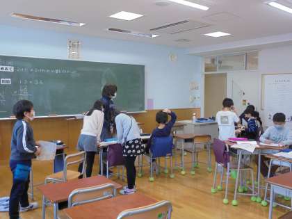 2月1日(月)の4時間目、3年1組は算数の時間でした。2クラスに分かれて学習をしています。「2けた×2けたのひっ算」の練習をしていました。ノーミス目指して頑張っています。