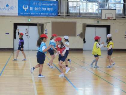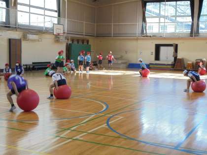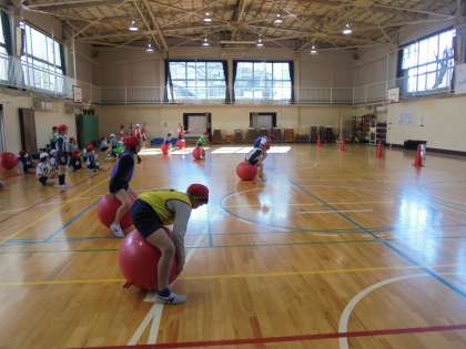2月1日(月)の5時間目、3年1組は体育の時間でした。体育館で「多様な動きをつくる運動」として、友達と片足相撲をしたり、スプーンリレーをしたりしました。最後は、Gボールで弾みながらリレーをしました。どれも楽しそうでした。