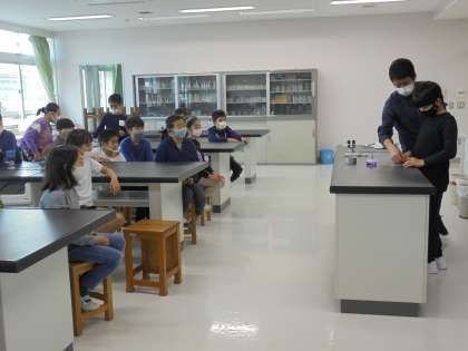 2日(火)の5時間目、4年1組は理科の時間でした。理科室で「アルコールランプ」の使い方を練習しました。一人ずつ前に出て、マッチを擦ったり、炎を消したりしました。見ている子どもたちも一つ一つ手順を確認し、真剣な態度でした。