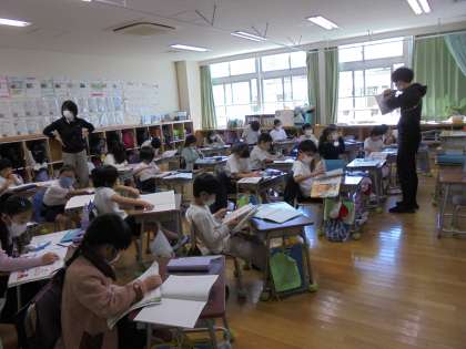 3日(水)の2時間目、1年2組は算数の時間でした。「時計」の学習のたしかめ問題をしました。子どもたちは、正しく時計を読むことができました。