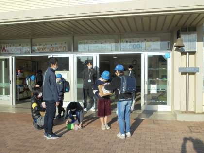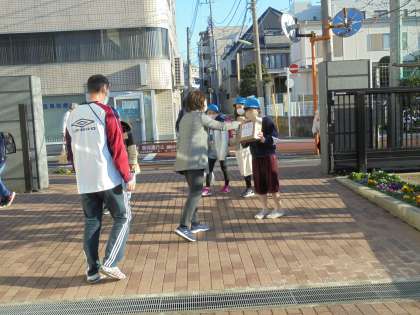 4日(木)朝のユニセフ募金活動の様子です。運営委員が登校してくる子どもたちに協力を呼びかけています。先生や主事さんたちも協力しています。