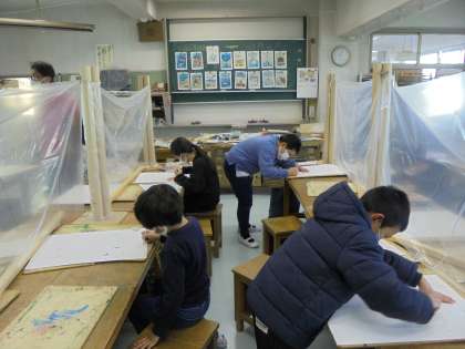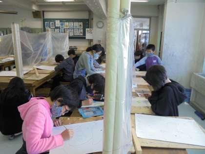 4日(木)の1・2時間目、4年2組は図画工作の時間でした。「環境ポスター」の制作に取り組んでいました。4年生は総合的な学習の時間にSDGsのことを調べてきました。そのことを生かし、世田谷区環境政策部主催の「令和3年度環境ポスターコンクール」に作品を応募することにしました。下書きの絵を見ながら四つ切の画用紙に大きく描き始めました。