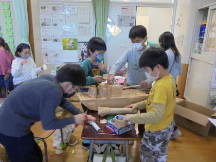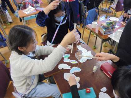 4日(木)の5・6時間目、3年1組は理科の時間でした。「じしゃく」の学習から磁石を使ったおもちゃ作りをしていました。工作用紙や割り箸、紙皿などを使って、「魚つり」「レース場」「エレベーター」などを作っていました。できたおもちゃで遊ぶ姿がとてもすてきでした。