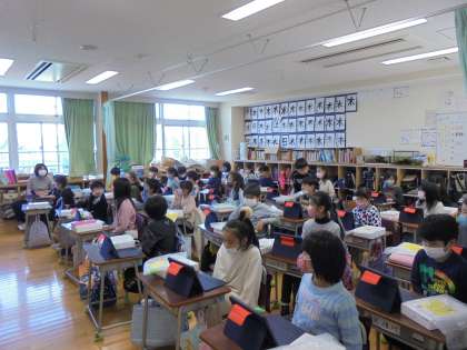 5日(金)の5・6時間目、3年1組では学習用タブレット型端末を一人一台配布しました。画面が出てくると「You Tubeがある」と大喜びしていました。ルーターを5台入れて臨みました。9日(火)の夕刻以降に、3年生から5年生を対象に「ロイロノート」から情報を配信します。子どもたちからの返信を楽しみにしています。保護者の皆様には、「学習用タブレット型端末の利用についての確認書」のご提出をお願いいたします。