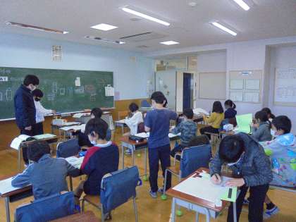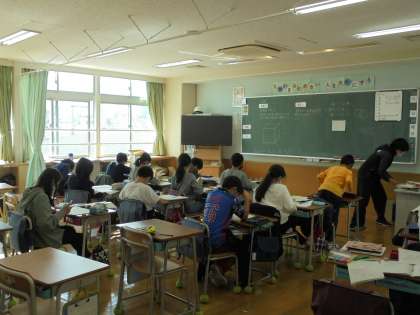 8日(月)の5時間目、4年生は算数の時間でした。単元名「立体」の学習をしています。展開図を描いて、立方体を作っていました。一辺の長さを変えて、大きさの違う立方体作りにも挑戦していました。