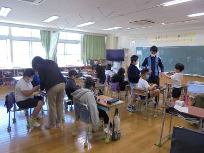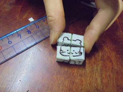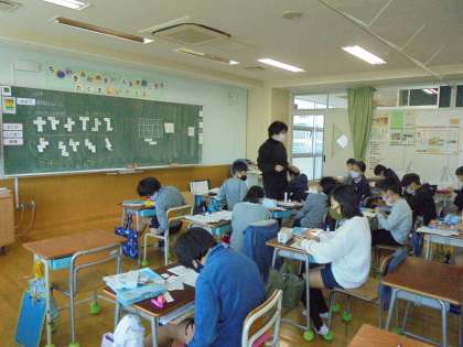 10日(水)の1時間目、4年生は算数の時間でした。立方体の展開図をたくさん考え、工作用紙で箱作りをしました。一辺が1cmの小さな立方体を作り、それを貼り合わせておもちゃを誕生させた人もいました。