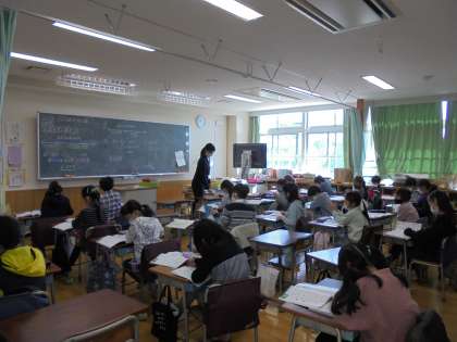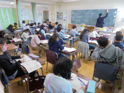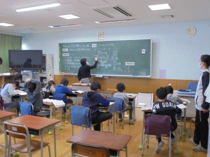 10日(水)の2時間目、3年1組は算数の時間でした。2クラスに分かれて学習をしています。今回は、□を使った式を図を使って考えました。ノートの使い方がとても丁寧になってきて成長を感じます。