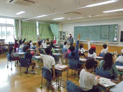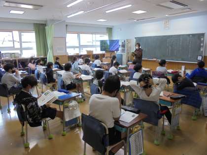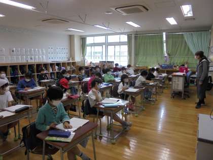 12日(金)の3時間目、2年生は2クラスとも国語の時間でした。「ようすをあらわすことばについて考えよう」をめあてに、「雨」を例にして考えました。今回と次回の2回は、クラスをシャッフルしての取組です。子どもたちの学びを広げることをねらいとしています。