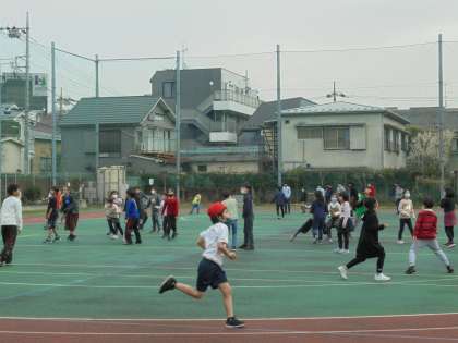 12日(金)、昼休みの子どもたちの様子です。翌13日(土)は授業日ですが、昼休みはありません。今週最後の昼休みです。校庭でも体育館でも元気に遊んでいました。体育館は4年生の割り当てでした。バスケットボール派とドッジボール派に分かれて、遊びました。昼休み終わりの音楽が鳴り出すと、中校庭で遊んでいた1年生が一斉に走り出しました。