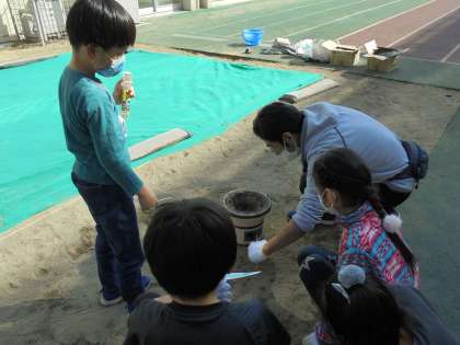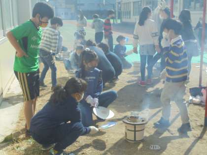 13日(土)、3年1組は社会科の学習の一環として「七輪体験」を行いました。例年ですと地域の皆さまにお越しいただいて、昔の生活や道具のお話を伺い、体験に臨むのですが、今年度はコロナ禍のため、お招きすることができませんでした。今回、子どもたちの体験が安全にできるように「すまいるルーム」の先生達が協力してくれました。