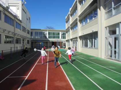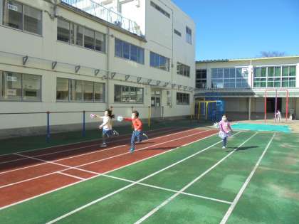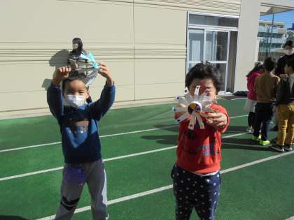 16日(火)の2時間目、1年1組は生活科の時間でした。「かぜとあそぼう」の学習で手作りの風車を回して遊びました。中校庭を走りながら、くるくる回る風車を楽しみました。