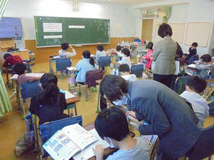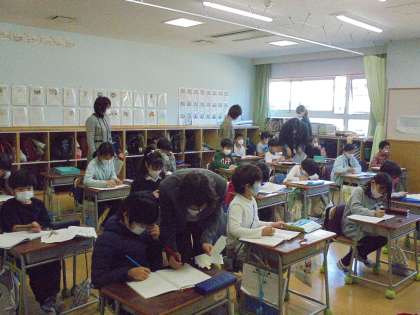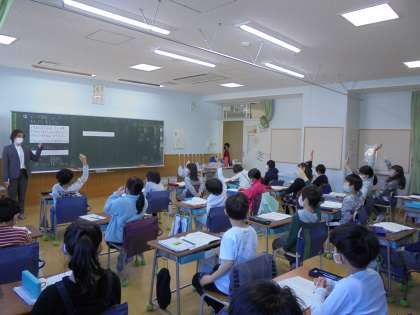 17日(水)の3時間目、2年2組は算数の時間でした。単元名「図をつかって考えよう」の学習です。問題は、「バスに12人乗っています。途中で何人か乗ってきたので、全部で28人になりました。途中で乗ってきた人は何人でしょう。」です。子どもたちは、途中で乗ってきた人の数を□として、図に表したり、式を書いたりしました。