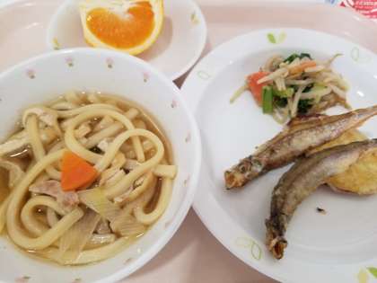 今日はてんぷらもししゃもが2本と芋天とボリュウム