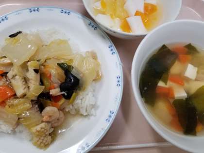 今日は中華丼です。具材もさまざま、やさいもたっぷりの