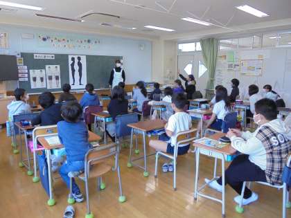 24日(水)の4時間目、4年2組は保健の時間でした。担任の先生と養護教諭とで「大人に近づく体」と題して、二次性徴について子どもたちと考えました。体つきがこれからどう変化していくのかをシルエットを見ながら発表しました。多少照れるところもありましたが、「そうなんだな。」と理解していました。4年1組は同じ日の3時間目に学習をしました。