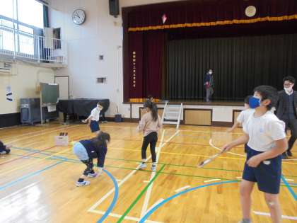 2年生は、今回の遊びに向けてコーナー名や遊び方を画用紙に書いたり、説明の練習をしたりしてきました。2年2組もそうでしたが、2年1組の子どもたちもお兄さん、お姉さんとしての自覚をもってしっかり取り組むことができました。写真は上から、けん玉、お手玉、羽根つき遊びの様子です。