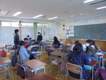 3月1日(月)の6時間目は、今年度最後の委員会活動でした。各委員会で活動の振り返りをしました。その後、運動委員会は体育倉庫の片付けを、保健・給食委員会は水石鹸の補充を、運営委員会は「人格の完成を目指して」ポスターの張替えをしました。