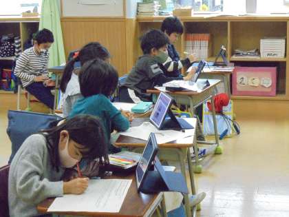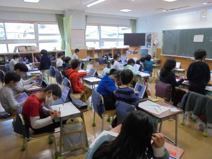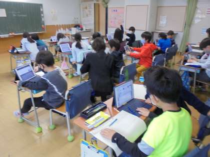 2日(火)の4時間目、2年2組は国語の時間でした。物語「スーホの白い馬」を読み進めていますが、今回は、タブレット型端末を使って「モンゴルのおうち」「馬頭琴」などについて調べ学習をしました。意欲的に調べる姿がありました。