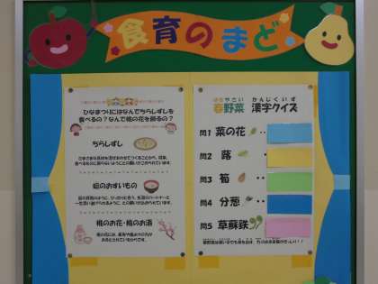 令和3年3月3日(水)、3が並びました。食育のまどが更新されました。今回のテーマは、「桃の節句と春の野菜」です。その下には、給食時に放送委員が読む「献立紹介」の原稿も登場しています。