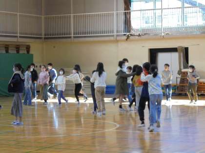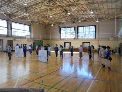 3日(水)の5時間目、4年生は体育館で6年生を送る会の練習をしました。1つ目の出し物では、子どもたち手作りの小道具がいくつも登場していました。出し物の2つ目は6年生と一緒に遊ぶ「じゃんけん列車」です。子どもたち自身がとても楽しんでいました。6年生ものってくれると嬉しいです。