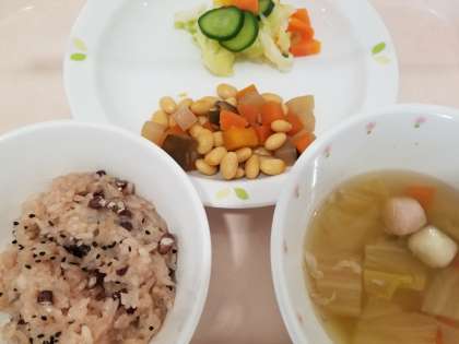 6年生の卒業をお祝いして、お赤飯の献立です。