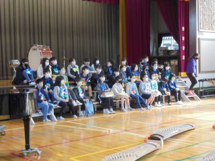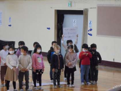 プレゼントされたメダルを首にかけた6年生の姿です。次の出し物は、なぞなぞでした。大きな声で一生懸命問題を出す1年生の姿にずっと笑顔の6年生でした。なぞなぞの答えに「なるほど」とうなずく場面もありあたたかな気持ちになりました。