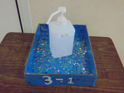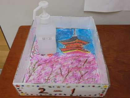6年生からプレゼントされた「消毒ケース」が各教室入口に登場しました。デザインがクラスによって違うので、子どもたちは見に出かけていました。