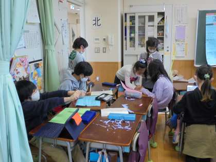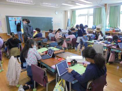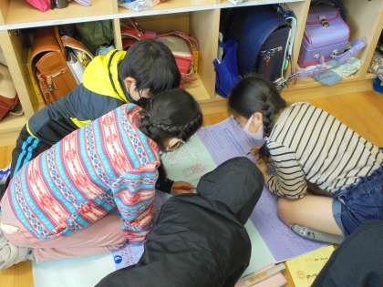 11日(木)の3・4時間目、3年1組は総合的な学習の時間でした。「ともに生きよう」をテーマに、まず、一人一人が調べました。次に、同じテーマの人たちでグループを作り、模造紙にまとめました。完成したグループは、発表の練習を始めていました。