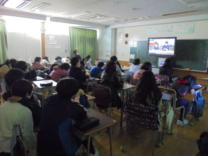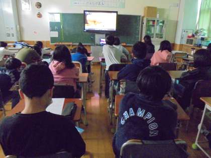 18日(木)の6時間目、6年1組は教室で図画工作の学習をしました。中学校に行っても役立つようにとカッターや小刀の使い方や作品の例を紹介する映像を見ました。改めて正しく使うことのよさ、間違って使うことの怖さを感じました。