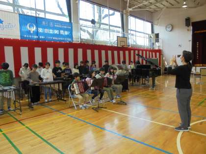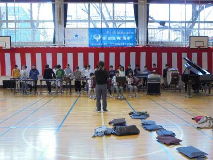 19日(金)の5時間目、5年1組は体育館で合奏の練習をしました。5年生は卒業式当日の参加はありませんが、合奏を録音・撮影した映像を流す予定です。そのために、担任の先生が合奏中の子どもたちを撮影しました。声を出すことはないので、マスクを外して演奏をしました。